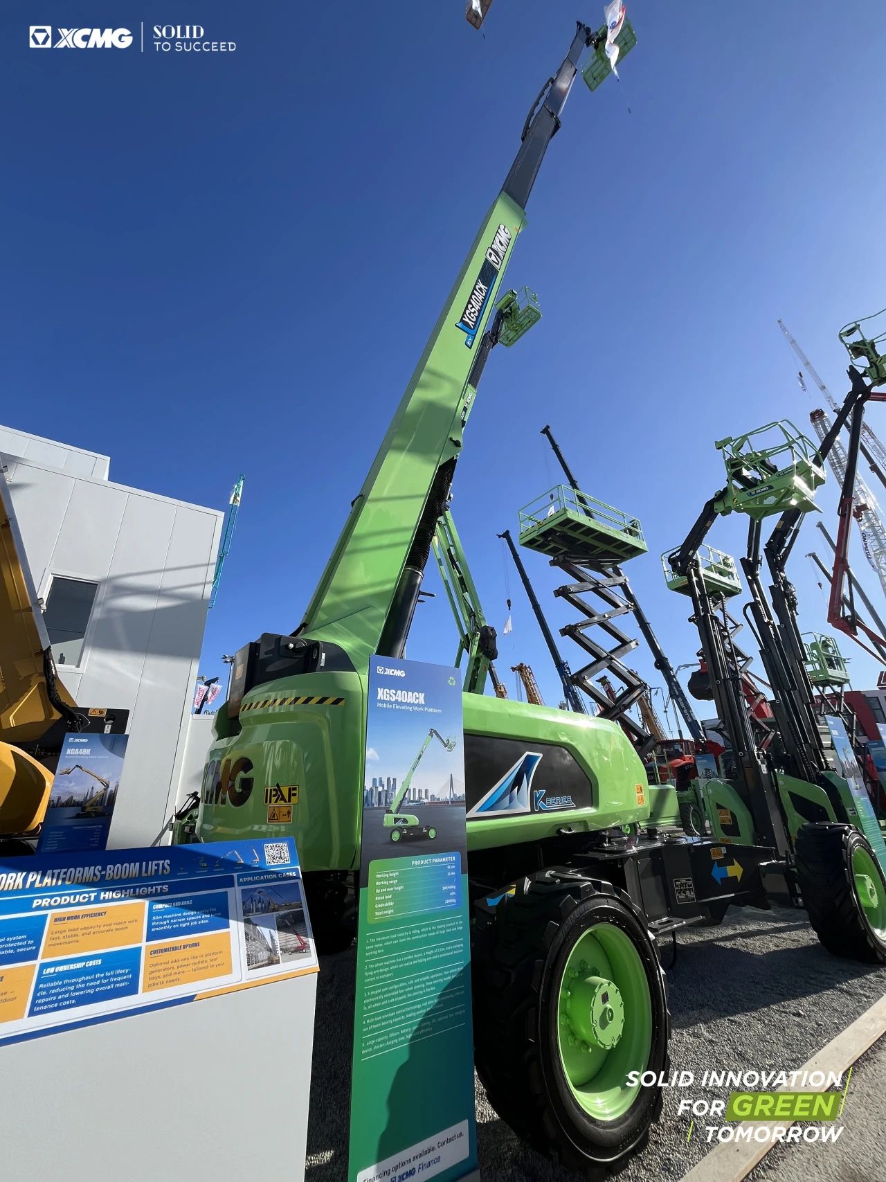 Solid Innovation for Green Tomorrow , 徐工將精準定位客戶需求為全球用戶提供更智能、更安全、更高效、更可靠的高空作業成套化解決方案。