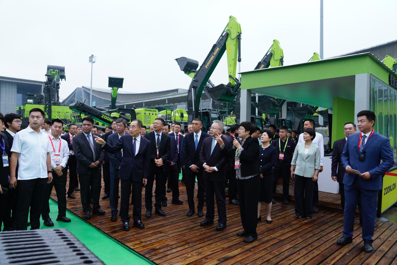 中聯(lián)重科黨委書記、董事長、CEO詹純新深度參與多場展會相關(guān)活動。5月14日,湖南省委常委、長沙市委書記吳桂英會見第四屆長沙國際工程機(jī)械展覽會嘉賓代表,詹純新參加會見。開幕式當(dāng)天,詹純新陪同湖南省委書記沈曉明、非洲駐華使節(jié)代表團(tuán)等參觀中聯(lián)重科展區(qū),并詳細(xì)介紹公司參展亮點(diǎn)及在高端化、智能化、綠色化方面的成果。隨后,詹純新還出席了展覽會開幕式。