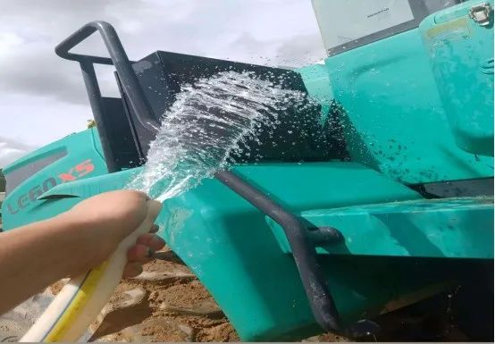 客戶在哪里,服務(wù)就延伸到哪里。首站,服務(wù)團(tuán)隊來到一處從事泥土作業(yè)與洗沙作業(yè)的裝載機(jī)客戶現(xiàn)場。暴曬與驟雨輪番上陣,裝載機(jī)在泥濘中持續(xù)高負(fù)荷運轉(zhuǎn)。服務(wù)人員抵達(dá)現(xiàn)場后,顧不上濕透的衣衫,立即展開整機(jī)排查——空調(diào)制冷是否穩(wěn)定、散熱器是否堵塞、液壓系統(tǒng)是否泄漏、電氣線路是否老化,逐項細(xì)查,毫不松懈。每一個細(xì)節(jié)的把控,都是對設(shè)備可靠性的保障。