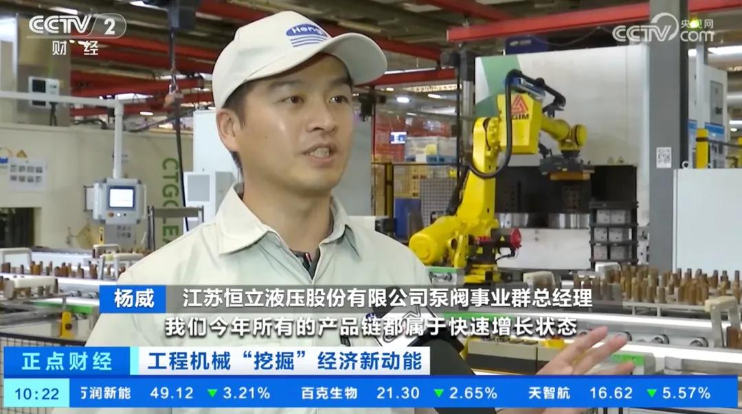 恒立液壓高級副總裁王斌:“像挖掘機行業(yè),跟去年同期比增長超過了15%。”